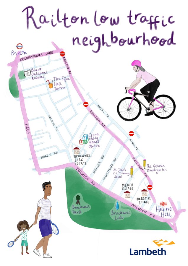 Today residents in the streets around Railton Road, between Brixton and Herne Hill have received letters about the low traffic neighbourhood (LTN) and healthy route coming to the area in about two weeks’ time.